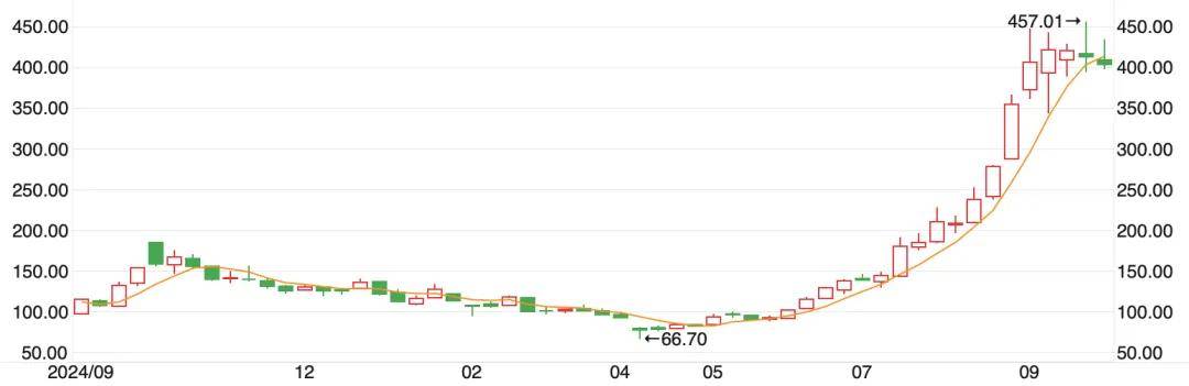 ▲中际旭创近一年股价走势图(周K线)